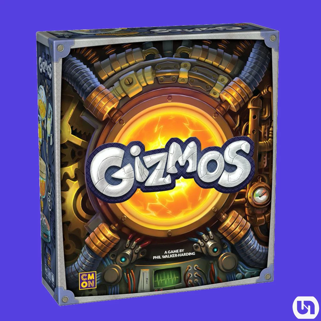 In Gizmos, players take on the role of contestants in the Great Science Fair. They will pluck energy marbles from the innovative plastic Energy Dispenser and use them to construct new Gizmos, adding them to their machines. Players will have to plan ahead as they build, since Gizmos can chain-react off of one-another. As more Gizmos are added, more reactions can trigger, creating some truly epic turns. In the end, the player with the most Victory Points is declared the winner.
