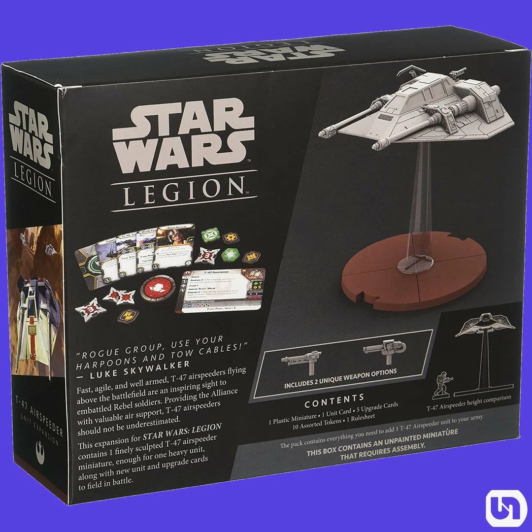- Dominate the sky with the single highly detailed T-47 Airspeeder miniature in this expansion pack. You can even customize the airspeeder’s rear-facing gun, adding in an AX-108 “Ground Buzzer” or relying on the Mo/Dk Power Harpoon.